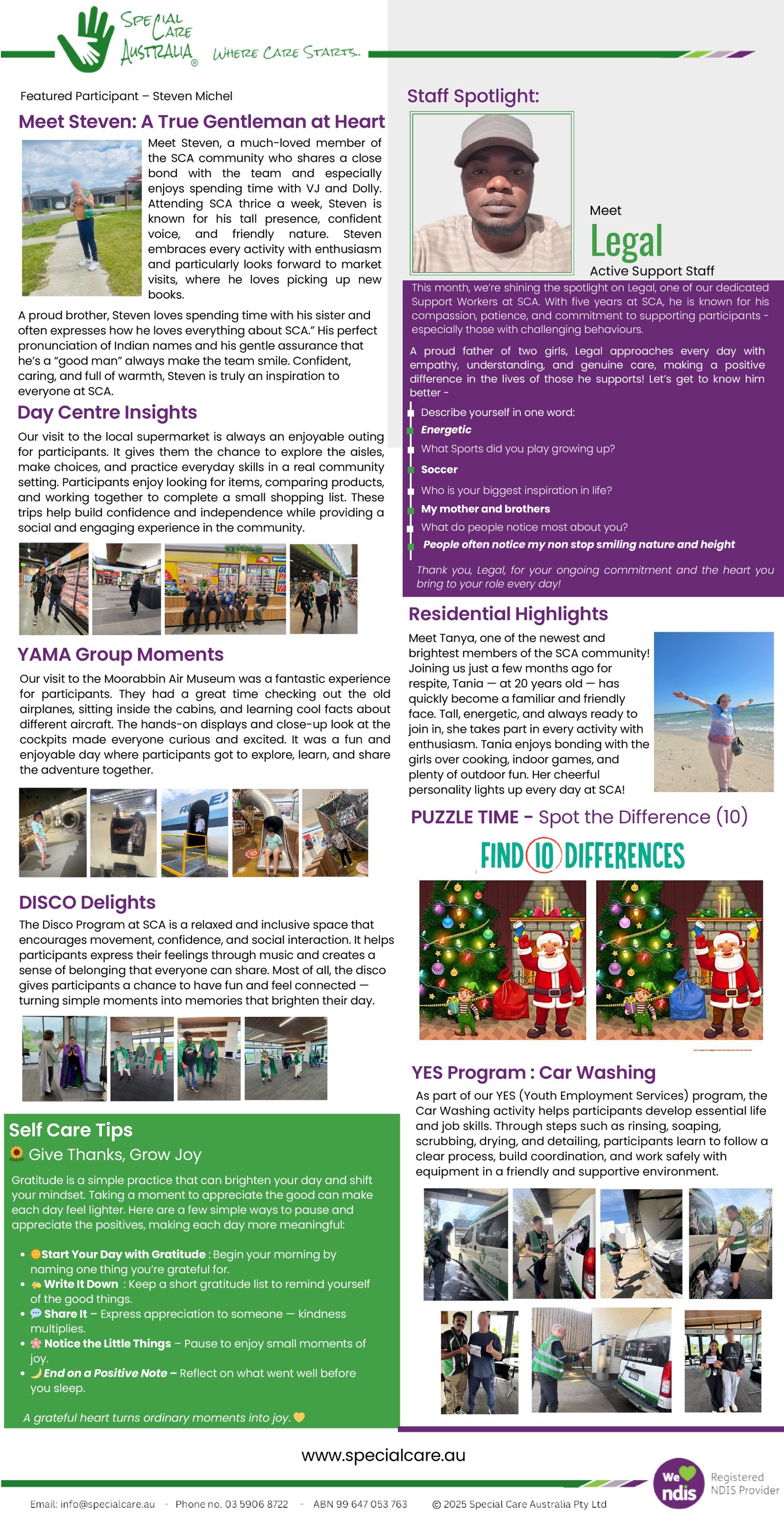 Special Care Australia Pty Ltd is a NDIS registered company which provides support to people with special needs in their day to day activities and Supported Independent Living.