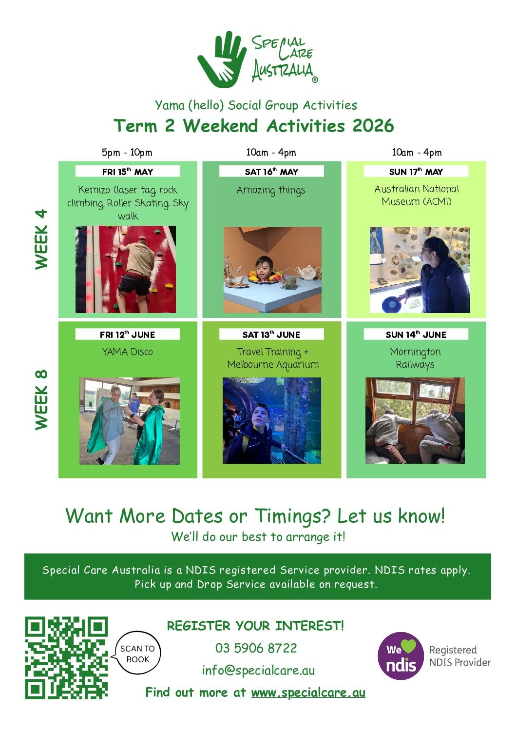 YAMA(hello) Social Group Activities Term 2 Weekend Activities 2026 by SCA | Apr 24, 2026 | Yama Planner | 0 comments #Previous Related Articles Yama Term 1 Autumn School Holiday Program YAMA Summer School Holiday Program 2026 YAMA Autumn School Holiday Program 2025 YAMA Group – School Holiday Programs – January 2025 YAMA Group – School Holiday Programs – Term 1 2024 YAMA Group – School Holiday Programs – Term 2 2024